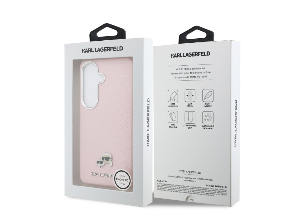 Karl Lagerfeld Grained PU Leather K&CH Heads Magnetic Zadní Kryt pro Samsung Galaxy S26+ Pink
