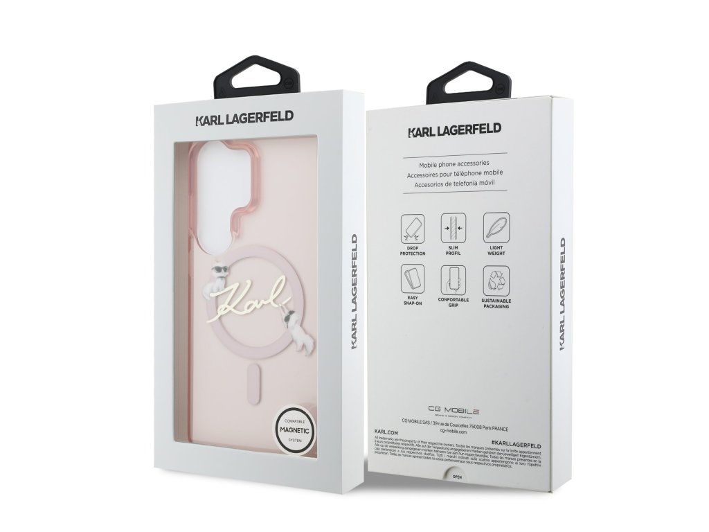 Karl Lagerfeld IML Choupette Karl Script Logo Magnetic zadní kryt je dokonalý doplněk pro váš telefon i váš outfit, který kombinuje funkčnost a styl v jednom. Tento kryt je vyroben z kombinace pevného PC plastu na zadní straně a TPU měkkého plastu na bocích, což vytváří dokonalou symbiózu odolnosti a pohodlí. Jeho pružný a měkký materiál se přizpůsobí tvaru vašeho telefonu a umožňuje snadný přístup ke všem tlačítkům a konektorům, zatímco textura krytu zajistí, že se skvěle drží v ruce a neklouže. Tento model je vybaven magnetickou funkcí, která umožňuje snadné a bezpečné uchycení k magnetickým držákům - například v autě. Magnet uvnitř krytu drží pevně, aniž by narušoval signál nebo funkčnost zařízení, a přitom zachovává štíhlý profil celého pouzdra. Jedná se tak o praktické řešení pro každého. Stylové Script logo doplněné hravou kočkou Choupette uprostřed krytu nabízí jedinečný a nepřehlédnutelný vzhled. Oživte svůj outfit tímto módním doplňkem, který podtrhne váš styl. Vsaďte na kvalitu, originalitu a dokonalou ochranu pro váš telefon s prémiovým krytem Karl Lagerfeld. Klíčové vlastnosti: - Originál Karl Lagerfeld - Lehký a odolný kryt z prémiového PC a TPU - Skvěle se drží v ruce a neklouže - Integrovaná magnetická funkce - vhodné pro použití s magnetickými držáky - Přesně kopíruje tvar telefonu a umožňuje snadný přístup k tlačítkům a konektorům. - Chrání telefon před prachem a poškrábáním - Stylový a funkční doplněk pro váš telefon i outfitDoplňkové parametry