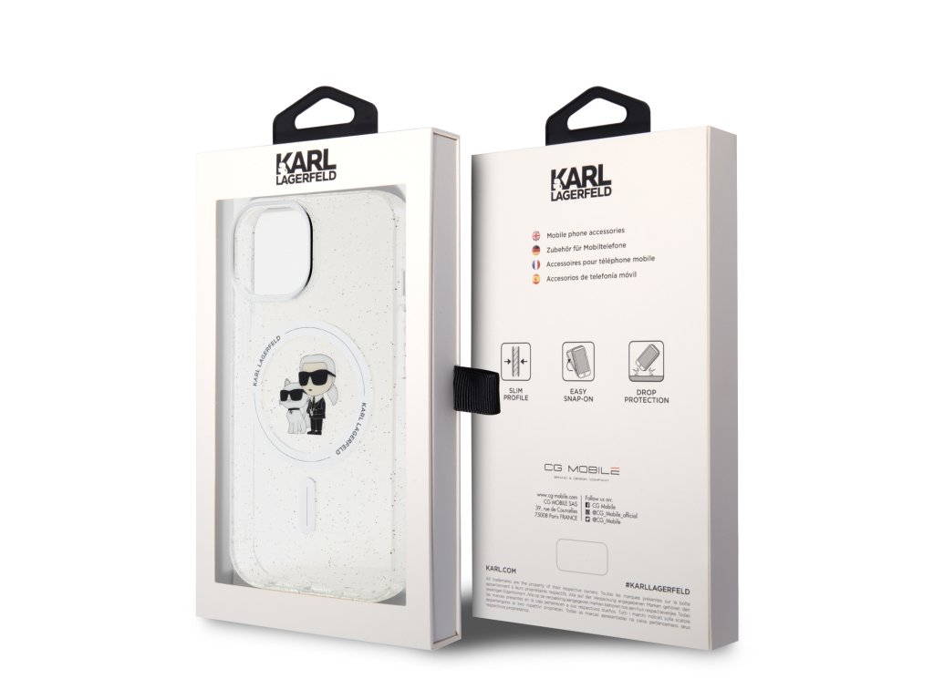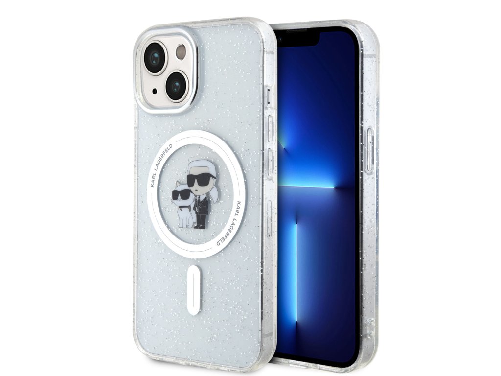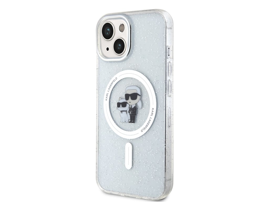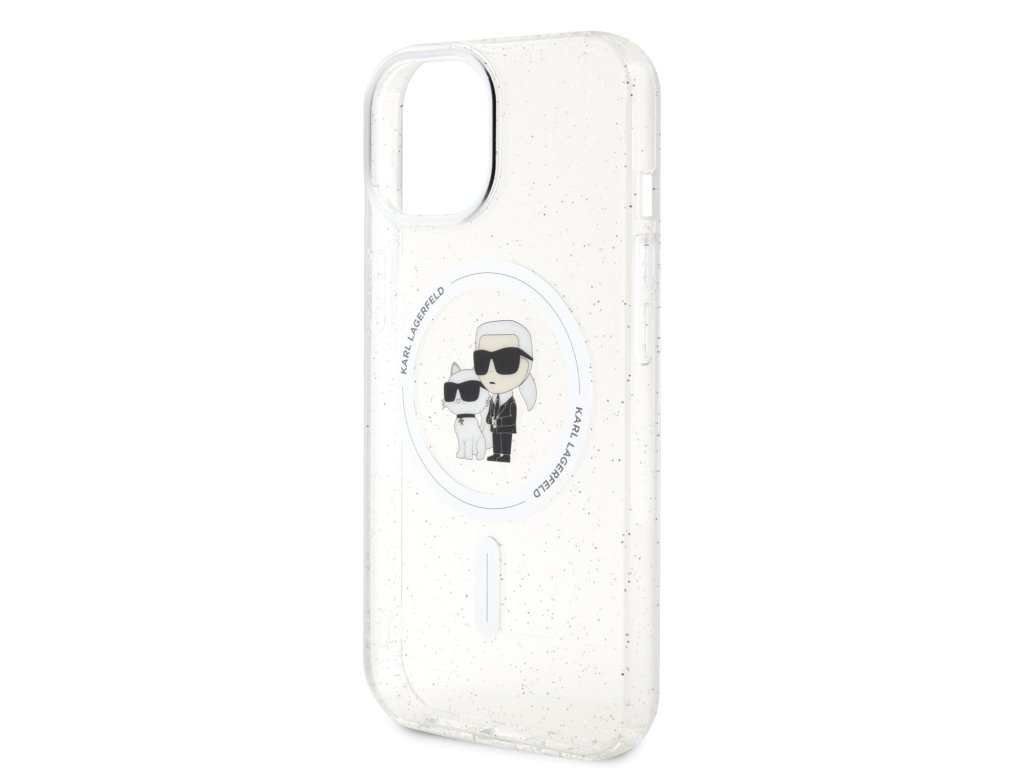 Karl Lagerfeld IML Glitter Karl and Choupette MagSafe Zadní Kryt pro iPhone 15 Transparent