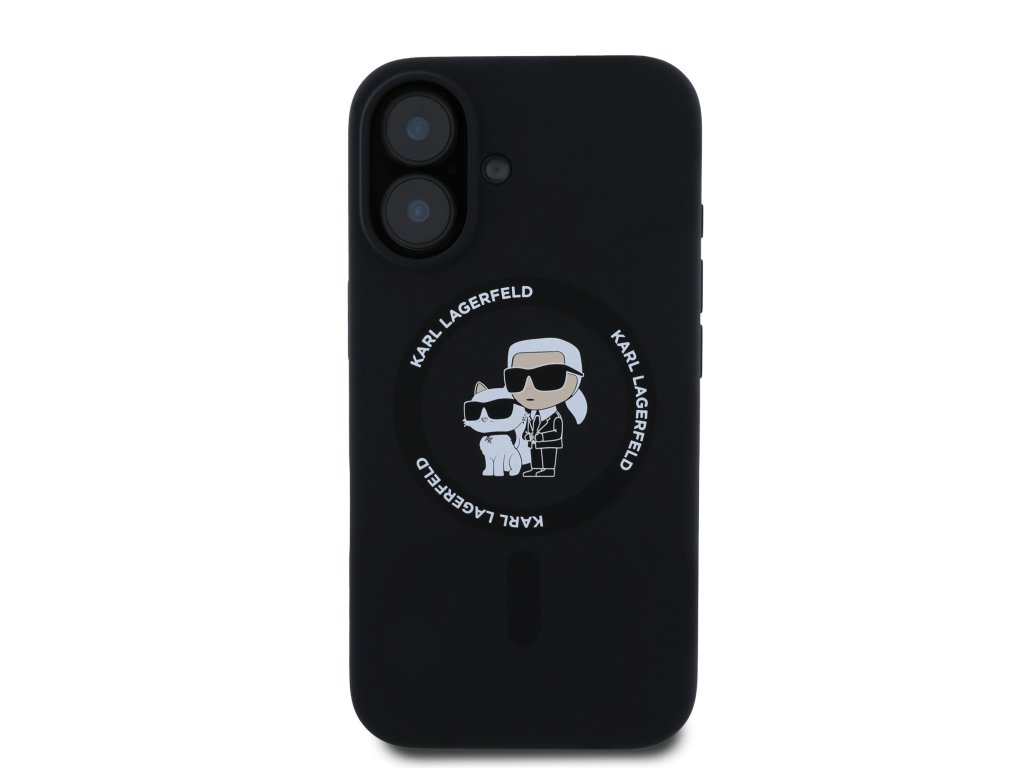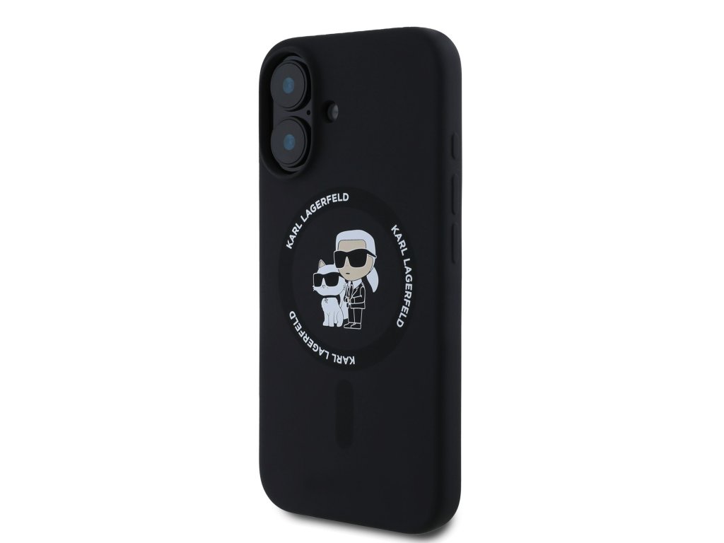 Karl Lagerfeld Liquid Silicone Karl and Choupette MagSafe Zadní Kryt pro iPhone 16 Black