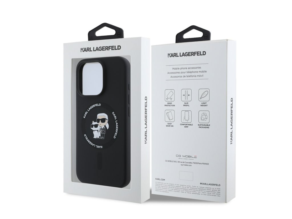 Karl Lagerfeld Liquid Silicone Karl and Choupette MagSafe Zadní Kryt pro iPhone 16 Pro Max Black