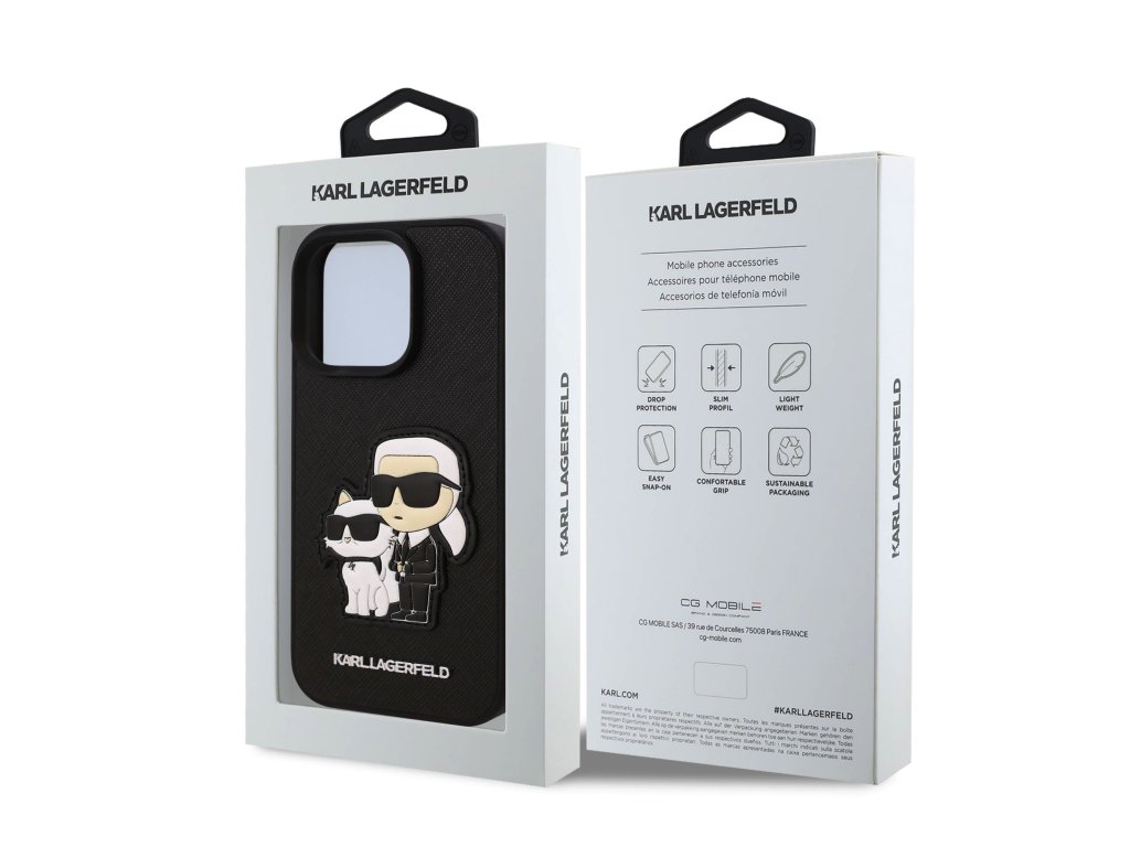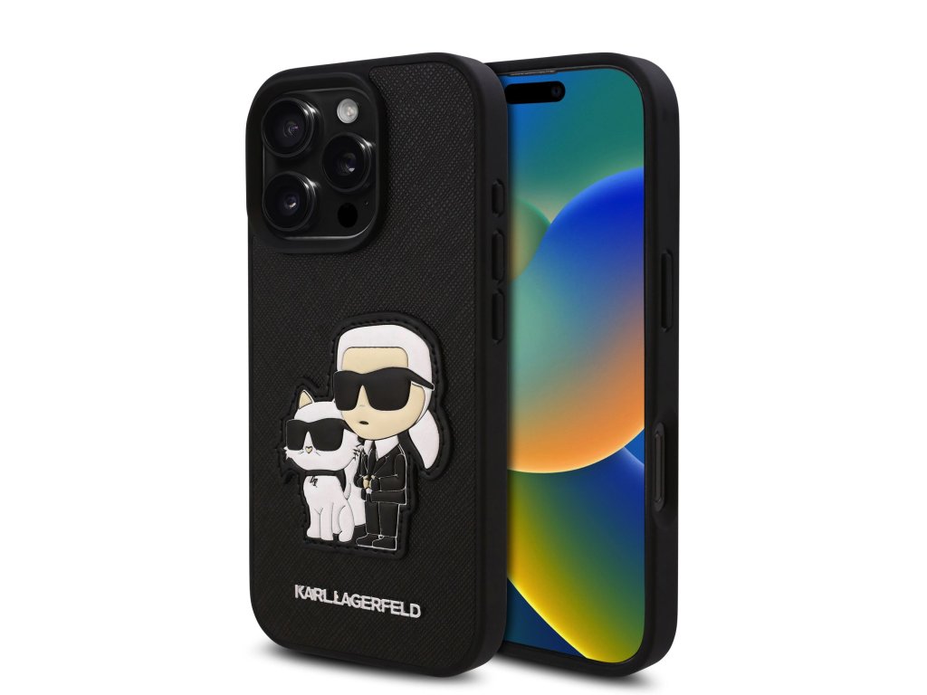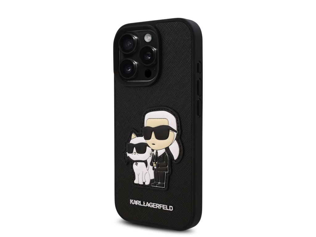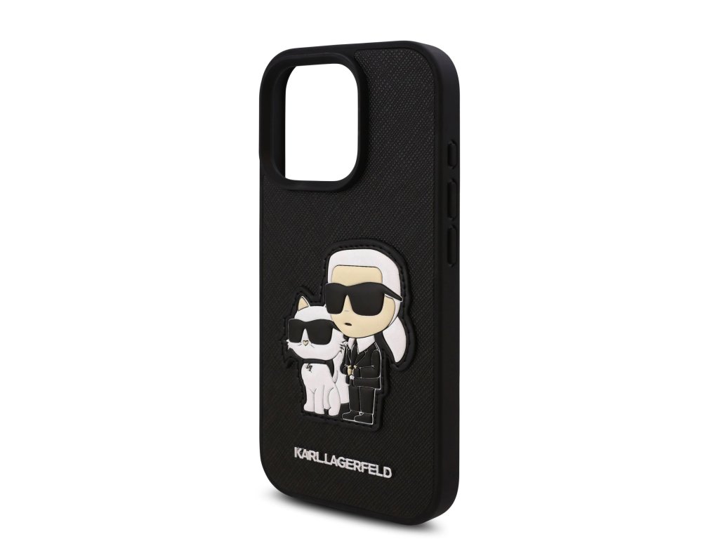 Karl Lagerfeld PU Saffiano Karl and Choupette Zadní Kryt pro iPhone 16 Pro Max Black