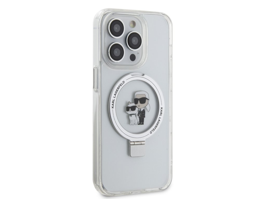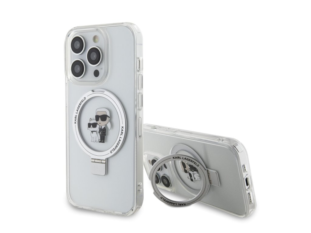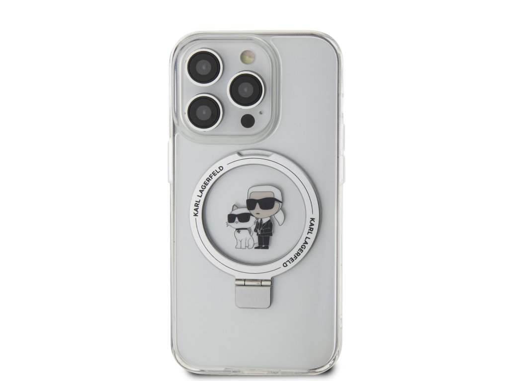 Karl Lagerfeld Ringstand Karl and Choupette MagSafe Zadní Kryt pro iPhone 15 Pro White