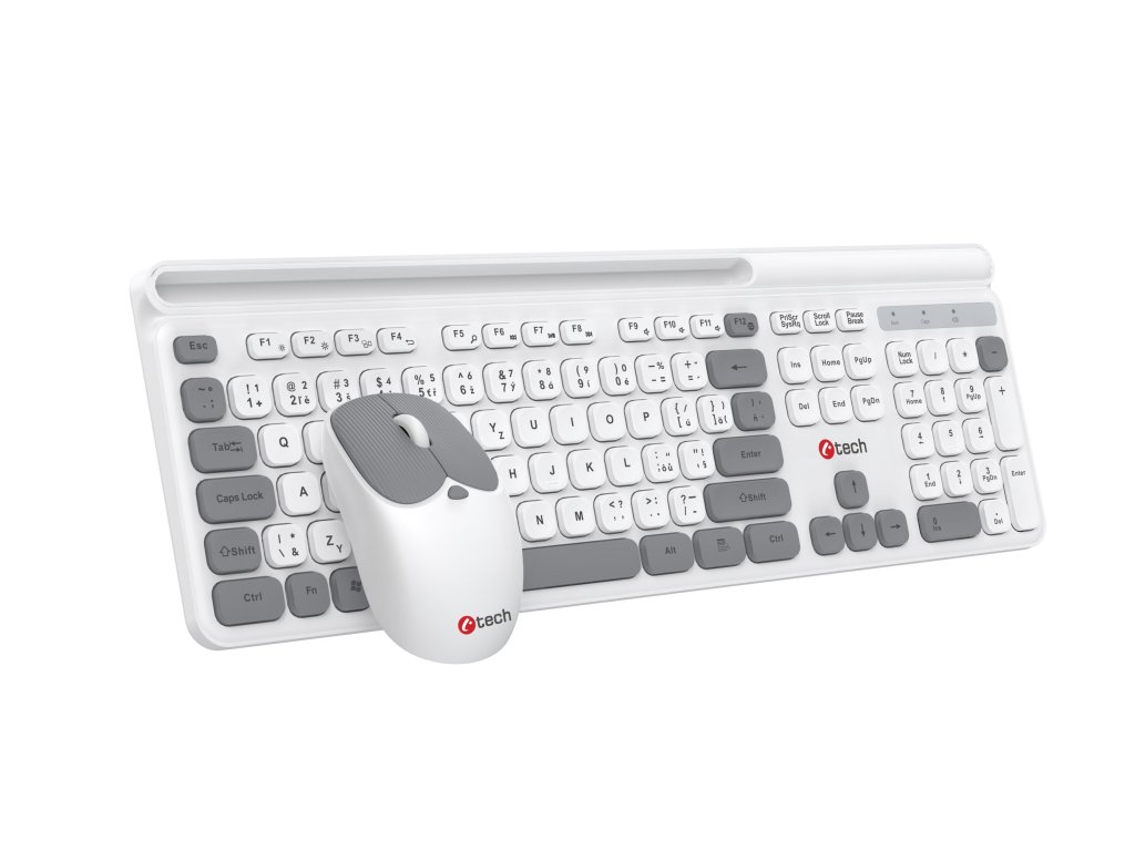 Klávesnice C-TECH Quallis WLKMC-05, bezdrátový combo set s myší, bílá, USB, CZ/SK
