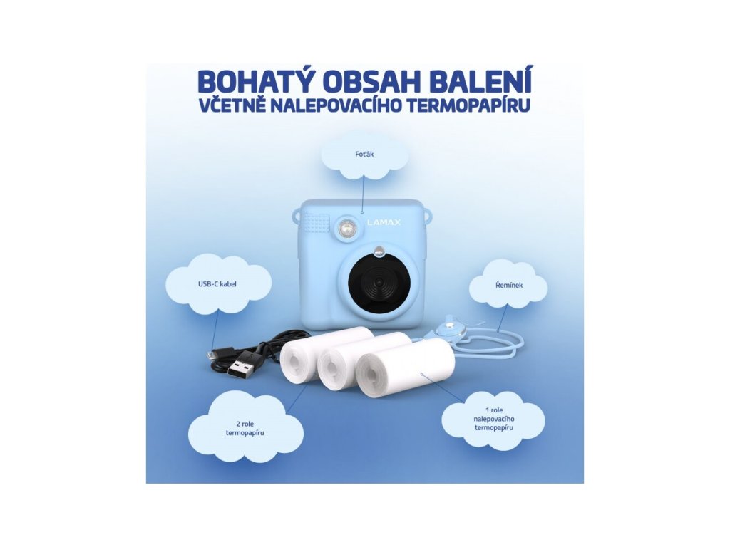 Jakmile foťák rozbalíš, můžeš začít dokumentovat dění. LAMAX InstaKid1 je vybaven 2 rolemi termopapíru a navíc ještě 1 rolí nalepovacího termopapíru, takže během chvíle vyrobíš parádní samolepky. Aby tvůj nový parťák nikde nezůstal ležet nebo ti nespadl, díky praktické šňůrce ho můžeš mít stále u sebe na krku. Foťák komunikuje v češtině a je jen na tobě, jestli se ti víc zalíbí v modrém nebo růžovém provedení. A kdyby ti to bylo málo, můžeš foťák používat i jako přehrávač MP3.