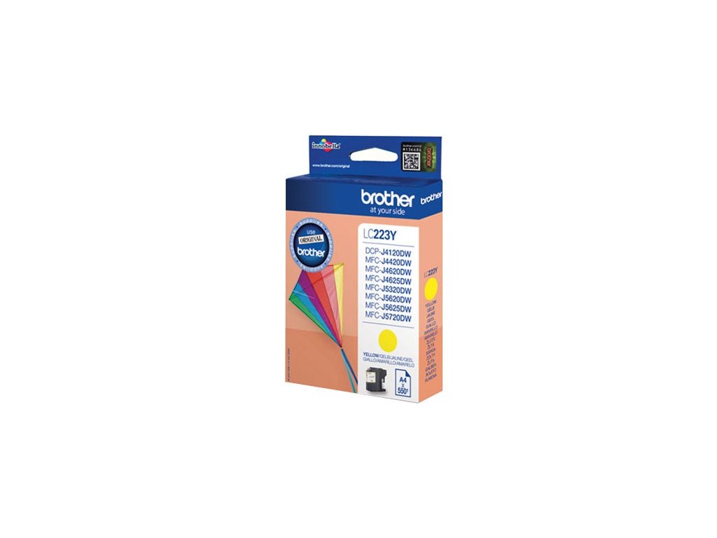 Originální cartridge Brother LC-223Y barva: žlutá výtěžnost: 550 stran stran při 5 % standardním pokrytí Pro tiskárny: Brother CP-J4120DW, MFC-J4420DW, MFC-J4620DW, MFC-J4625DW, MFC-J5320DW, MFC-J5620DW, MFC-J5625DW a MFC-J5720DWDoplňkové parametry