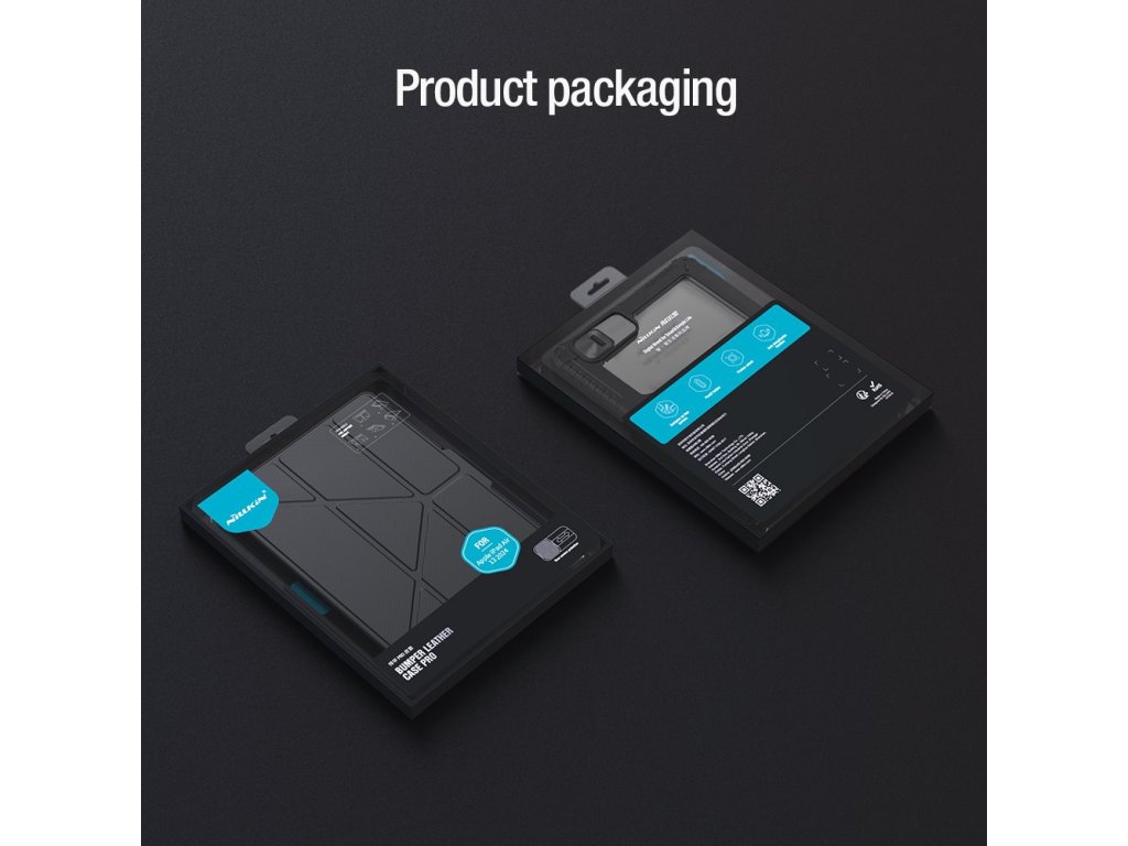 Nillkin Bumper Pro ochranné pouzdro s praktickým flipem, který slouží zároveň jako stojánek je vyrobeno z vybraného materiálu TPU a PC. Čočka fotoaparátu je chráněna posuvným krytem Zajišťuje dokonalou ochranu a funkčnost. Zesílené rohy perfektně ochrání hrany tabletu. Flip krytu je z PU kůže. Unikátní skládací kryt zobrazuje tablet ve všech zvolených úhlech pro psaní, čtení a prohlížení webu. Složení krytu je velmi jednoduché. Vlastnosti - transparentní PC zadní strana - TPU rámeček - posuvný kryt zadního fotoaparátu - přední strana z umělé kůže - ochranný kryt - přesné výřezy na fotoaparát, konektory, reproduktory - kompletní ochrana - kvalitní provedeníDoplňkové parametry