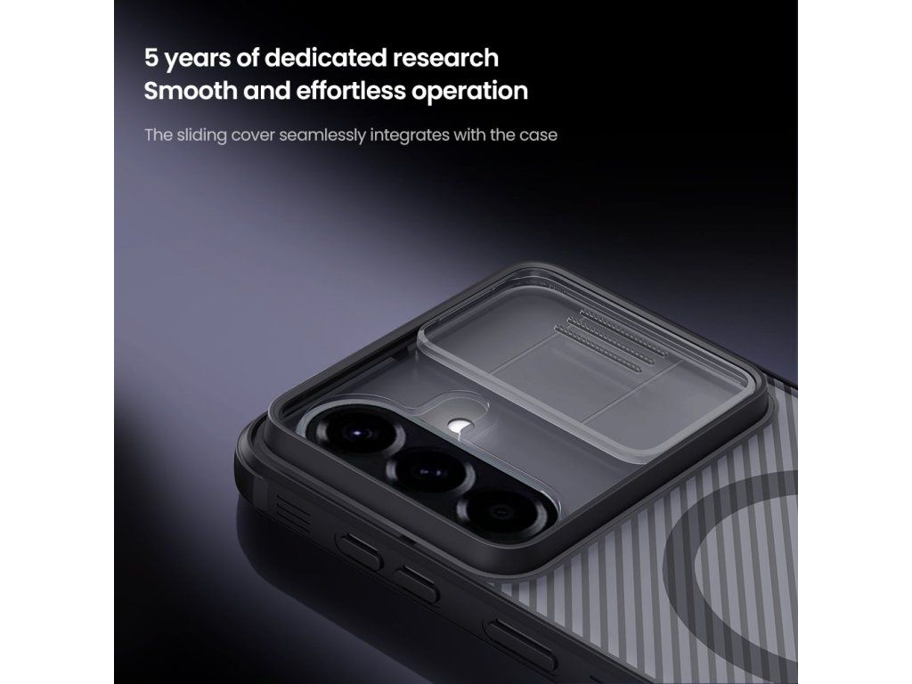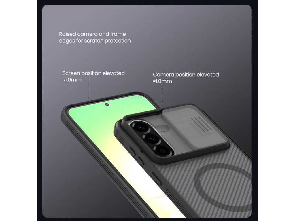 Nillkin CamShield PRO Magnetic je unikátní kryt s posuvným krytem čočky fotoaparátu a integrovaným magnetem. Oproti klasickému CamShield je unikátní v tom, že se skládá ze dvou materiálů a je vybaven magnetem. Záda krytu jsou vyrobena z pevného a odolného plastu a to včetně krytu fotoaparátu. Rámeček krytu je vyroben z měkčeného TPU plastu, pro nejlepší ochranu okrajů a rohů telefonu. Oba dva materiály jsou vysoce odolné proti opotřebení, ale také proti otiskům prstů a mastnotě. Přesné výřezy na ovládací prvky a potřebné konektory zajišťují pohodlnou obsluhu telefonu. Vlastnosti: - materiál: TPU, PC - Integrovaný magnet - ochranný kryt - perfektně padne na daný typ telefonu - perfektní ochrana vašeho fotoaparátu - protiskluzový designDoplňkové parametry