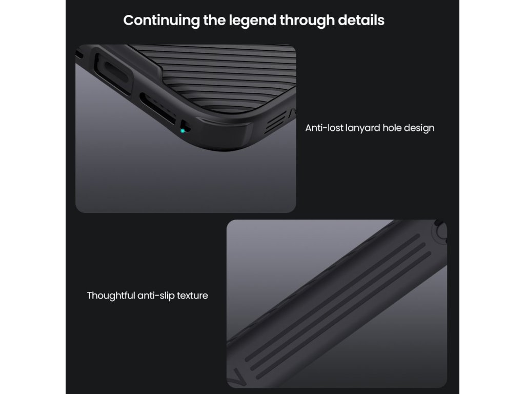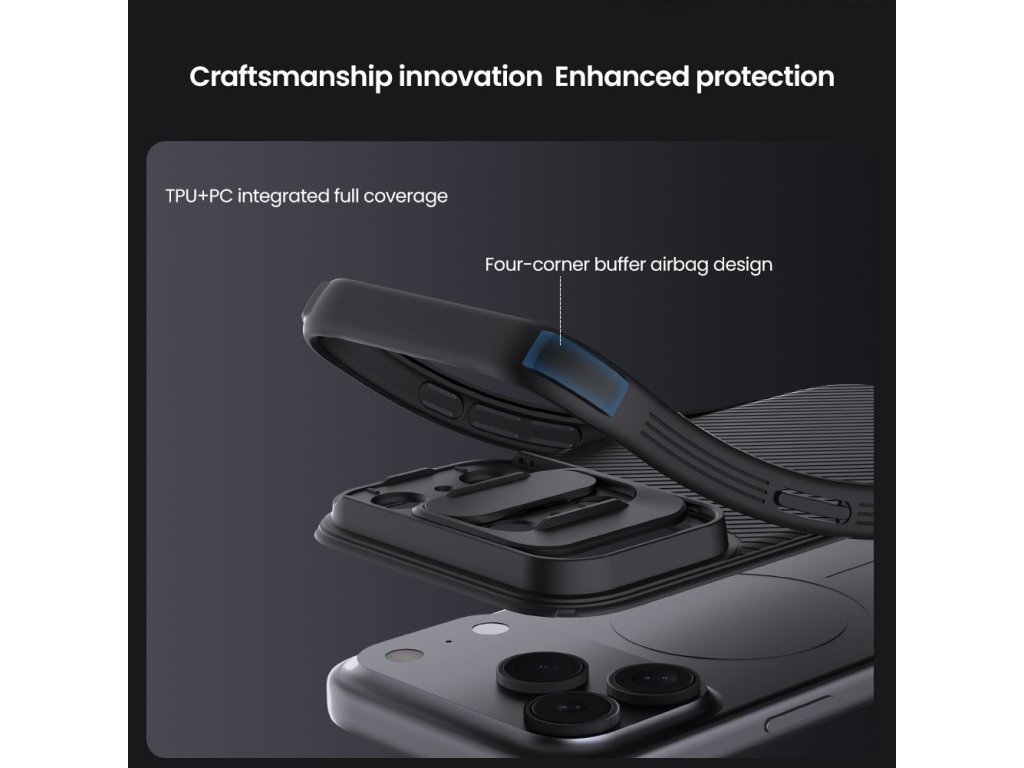 Nillkin CamShield PRO je unikátní kryt s posuvným krytem čočky fotoaparátu. Navíc je oproti klasickému CamShield unikátní v tom, že se skládá ze dvou materiálů. Záda krytu jsou vyrobena z pevného a odolného plastu a to včetně krytu fotoaparátu. Rámeček krytu je vyroben z měkčeného TPU plastu, pro nejlepší ochranu okrajů a rohů telefonu. Oba dva materiály jsou vysoce odolné proti opotřebení, ale také proti otiskům prstů a mastnotě. Přesné výřezy na ovládací prvky a potřebné konektory zajišťují pohodlnou obsluhu telefonu. Vlastnosti: - materiál rámečku TPU - materiál zadní strany PC - posuvný kryt pro ochranu čočky fotoaparátu - perfektně padne na daný typ telefonu - měkčený rámeček pro maximální ochranuDoplňkové parametry