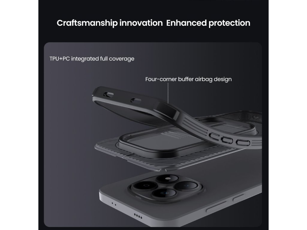 Nillkin CamShield PRO je unikátní kryt s posuvným krytem čočky fotoaparátu. Navíc je oproti klasickému CamShield unikátní v tom, že se skládá ze dvou materiálů. Záda krytu jsou vyrobena z pevného a odolného plastu a to včetně krytu fotoaparátu. Rámeček krytu je vyroben z měkčeného TPU plastu, pro nejlepší ochranu okrajů a rohů telefonu. Oba dva materiály jsou vysoce odolné proti opotřebení, ale také proti otiskům prstů a mastnotě. Přesné výřezy na ovládací prvky a potřebné konektory zajišťují pohodlnou obsluhu telefonu. Vlastnosti: - materiál rámečku TPU - materiál zadní strany PC - posuvný kryt pro ochranu čočky fotoaparátu - perfektně padne na daný typ telefonu - měkčený rámeček pro maximální ochranuDoplňkové parametry