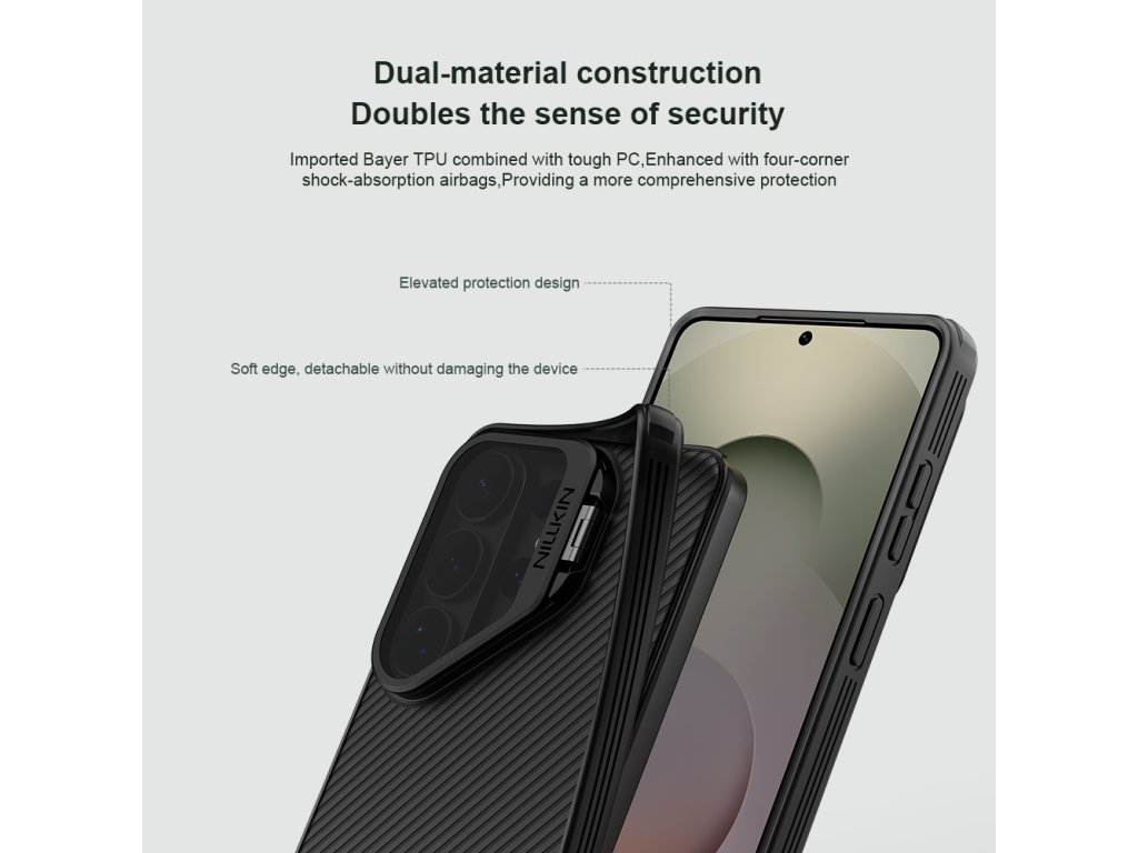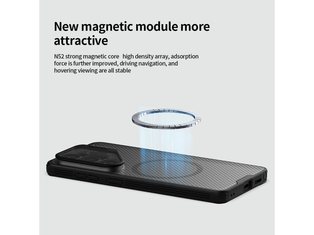 Nillkin CamShield Prop Magnetic je unikátní zadní kryt s výklopným krytem čočky fotoaparátu a integrovaným magnetem. Záda krytu jsou vyrobena z pevného a odolného plastu jehož součástí je i magnet. Rámeček krytu je vyroben z měkčeného TPU plastu, pro nejlepší ochranu okrajů a rohů telefonu. Oba dva materiály jsou vysoce odolné proti opotřebení, ale také proti otiskům prstů a mastnotě. Přesné výřezy na ovládací prvky a potřebné konektory zajišťují pohodlnou obsluhu telefonu. Kryt fotoaparátu nejen že chrání, ale v případě vyklopení může sloužit jako stojánek. Vlastnosti: - Materiál zadní strany: PC - Materiál rámečku: TPU - Integrovaný magnet - Výklopný kryt pro ochranu čoček fotoaparátu, který může sloužit i jako stojánek. - Perfektně padne na daný typ telefonuDoplňkové parametry