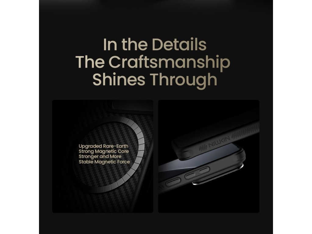 Nillkin CarboProp aramid zadní kryt je vyroben z aramidového vlákna, běžně známého jako "černé zlato" v materiálovém průmyslu. Aramidová vlákna a TPU poskytuje vašemu telefonu komplexní ochranu. Zadní strana: Vojenský materiál, 5x pevnější než ocel. Rámečky: TPU měkký rámeček, 360° ochrana. Fotoaparát: Kovový rámeček zabraňuje nárazům a poškrábání. Přední strana: 0,5 mm zvednutý rámeček pro ochranu displeje. Kreativní design kovového rámu kolem fotoaparátu nejen chrání fotoaparát, ale také slouží jako stojánek. Díky vestavěnému silnému magnetu si můžete MagSafe užívat podle libosti. Vyznačuje se dobrými izolačními a nevodivými vlastnostmi, které neovlivňují používání GPS, sítě, signálu a bezdrátového nabíjení. - Vlastnosti: - Aramidové vlákno - TPU materiál - Kovový rámeček kolem fotoaparátu, který zároveň slouží jako stojánek. - Zvýšené rámečky kolem displeje - Silný magnet N52 - Přesné výřezy - Neomezuje signál, ani bezdrátové nabíjeníDoplňkové parametry