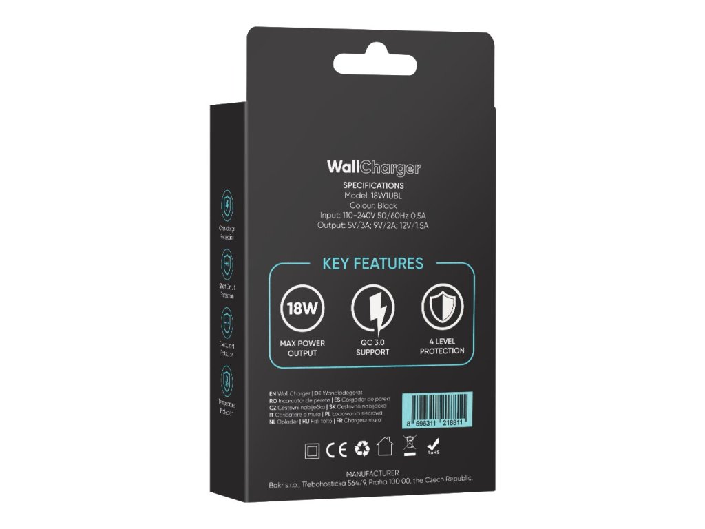 S cestovní nabíječkou OBAL:ME si můžete být jisti, že vaše elektronické přístroje budou v bezpečí a vždy připraveny k použití. Hlavní funkce: Přepěťová ochrana S naší cestovní nabíječkou budete mít klid vědomí, že vaše zařízení jsou chráněna před neočekávanými přepětími. Ochrana proti zkratu S naší nabíječkou nebudete muset dělat starosti ohledně zkratů, které by mohly poškodit vaše elektronické přístroje. Nadproudová ochrana Naše nabíječka je navržena tak, aby chránila vaše zařízení před nadproudy a zajistila rychlé, ale bezpečné nabíjení. Teplotní ochrana Díky vestavěné teplotní ochraně můžete být jistí, že vaše zařízení zůstanou v bezpečí před nadměrným zahříváním. Čtyřstupňová ochrana S kombinací všech těchto ochranných prvků nabízí naše cestovní nabíječka čtyřstupňovou ochranu, která vám dává klid a jistotu během nabíjení vašich zařízení. Nabíječka je vyrobena z kvalitních materiálů a splňuje všechny potřebné bezpečnostní normy, aby zajistila bezproblémové nabíjení. Specifikace: - čtyřstupňová ochrana před přepětím, zkraty, nadproudem a přehřátím - Input: 100-240V, 50/60Hz 0.5A - Output: 5V/3A; 9V/2A; 12V/1.5A - Podpora nabíjení QC 3.0 - maximální výkon: 18 W Obsah balení: 1x USB-A nabíječka do sítě 1x manuálDoplňkové parametry