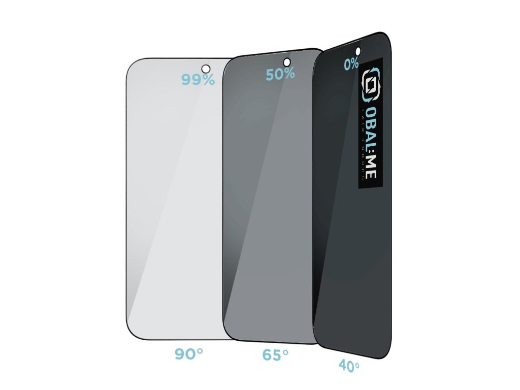 OBAL:ME tvrzené sklo je klíčovým prvkem k dlouhé životnosti a ochrany vašeho telefonu. S tloušťkou 0,33mm je sklo takřka neznatelné na dotek a tak plocha obrazovky neztrácí na citlivosti. Vyvážené množství lepidla na vnitřní straně zajišťuje velmi snadnou a rychlou instalaci. Naše sklo na telefon nabízí vlastnosti, které ho dělají nepostradatelným: Ochrana soukromí Váš osobní prostor si zaslouží tu nejlepší ochranu. Privacy tvrzené sklo udržuje váš displej v bezpečí před nežádoucími pohledy. Výrazně omezuje pozorovací úhly, takže obsah vašeho zařízení je viditelný pouze při přímém pohledu 90° - 99% propustnost 65° - 50% propustnost 40° - 0% propustnost Ochrana displeje OBAL:ME sklo je navrženo tak, aby ochránilo Vaši obrazovku jak při běžném používaní, tak před nečekanými událostmi jako jsou nárazy a pády. Odolnost vůči otiskům Díky pokročilé technologii našeho skla si užijete krystalicky čistý obraz a minimalizované otisky prstů. Ochrana očí Chráníme nejen váš telefon, ale i vaše oči. OBAL:ME sklo redukuje nepříjemné záření a ochrání vaše oči před únavou. Lepící vrstva po celé ploše skla Díky rovnoměrnému a pevnému přilnutí na obrazovku si můžete být jisti, že sklo zůstane na svém místě a nebude ovlivňovat citlivost dotykového displeje. Tvrdost 9H Tvrdost 9H je označení pro odolnost povrchu, který je odolný vůči poškrábání. Tento termín se používá k popisu materiálů, které jsou vhodné pro ochranu displejů a povrchů elektronických zařízení. Rozdíl mezi 2.5D a 5D ochrannými skly spočívá v tvaru a rozsahu zakrytí obrazovky. 2.5D nemá zakřivené hrany na obvodu a pokrývá plochou část obrazovky, zatímco 5D sahá až do krajů displeje, což poskytuje více ochrany a lepší vzhled. Obsah balení: - tvrzené sklo OBAL:ME - vlhčený ubrousek pro dokonalé vyčištění displeje - hadřík z mikrovlákna - samolepky k odstranění zbývajích nečistotDoplňkové parametry