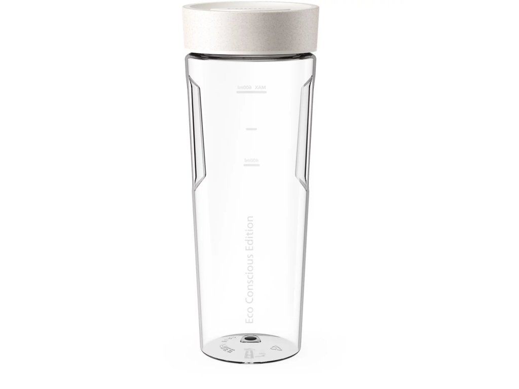 Bioplasty* jsou vyrobeny z biologických a obnovitelných zdrojů, jako je slunečnicový olej. Použitý olej, který zůstane po vaření, se shromažďuje a recykluje prostřednictvím ekologicky šetrného procesu, aby byl vhodný pro styk s potravinami. Sklenice mixéru je navržena s Tritan Renew, 100% bez BPA, bezpečného pro jakýkoli typ kontaktu s potravinami.