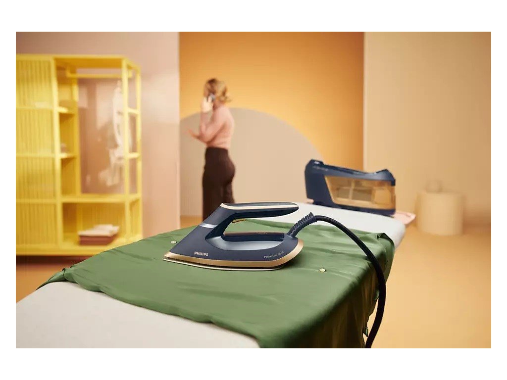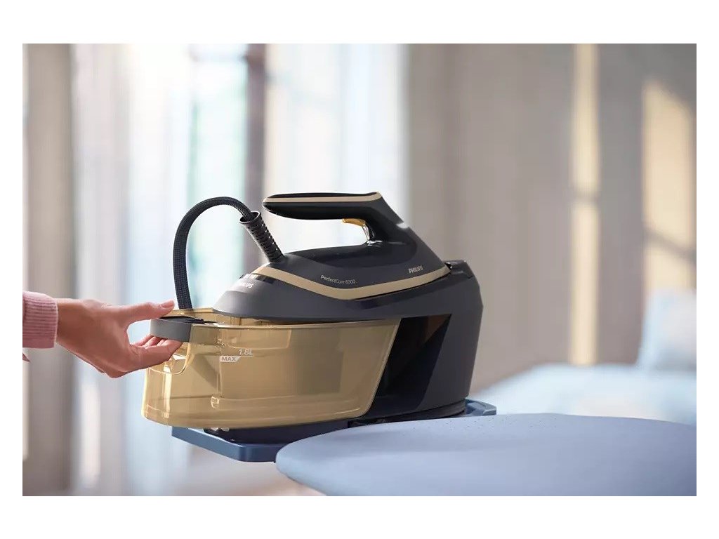 Výkonné a kompaktní žehlení s parním generátorem Philips PSG6066/20 garantuje výsledek bez spálení a je připraven již během 2 minut. Výkon 2 400 W s tlakem 8 barů disponuje trvalým parním výstupem 130 g/min. a parním rázem 600 g/min. i pro vertikální napařování. Hladce si poradí se silnější tkaninou i odolnými záhyby. Technologie OptimalTEMP dokáže žehlit bez nutnosti nastavení teploty a bez rizika spálení látky. Nadstandardní žehlící plocha SteamGlide Advanced pro špičkové klouzání po povrchu a odolnost. Napařovací špička Precision si skvěle poradí s jakýmkoliv záhybem. Ideální a bezpečná volba pro všechny typy látek.Nádržka na vodu zvládne pojmout 1 800 ml pro délku žehlení až 1,5 hodiny nepřetržitého provozu. Vhodná náplň je i voda z kohoutku, pokud je nádržka prázdná, kontrolka vás upozorní na doplnění. Systém Smart Calc Clean s nádobou pro jednoduché odvápnění vám připomene, kdy je potřeba odstranit vodní kámen. Zamknutí pro rychlé přemístění a uložení. Žehlička je vybavena systémem proti odkapávání. Zařízení má automatické vypnutí při nečinnosti pro úsporu energie a bezpečnost. Délka hadice je 1,6 m a délka síťového kabelu má 1,65 m. Žehlička váží 1,2 kg.