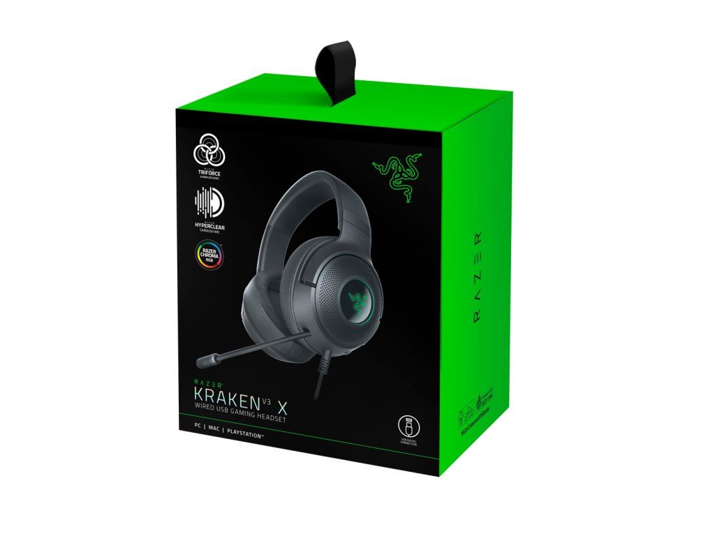 Představujeme Razer Kraken V3 X, herní náhlavní soupravu s USB pro PC, která vám umožní hrát dál a dál a dál. Vylepšeno patentovanými ovladači Razer ™ TriForce pro neuvěřitelně realistický zvuk.