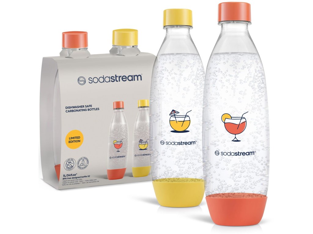Sada obsahuje 2 tlakové nápojové lahve v jedinečném designu, který inspirovaly letní motivy. S letními motivy v příjemných odstínech oranžové a žluté, tyto lahve nejen osvěží vaše nápoje, ale také přinesou do vašeho prostoru příjemný dotek letní elegance. Universální lahev Sodastream vyrobená z Tritanu řeší neustálé dilema, jak se během dne, doma, v práci či na cestách napít a netrápit se přitom s lahvemi na jedno použití a následnými hromadami plastového odpadu. S novou, opakovaně použitelnou lahví budete mít čerstvě natočenou vodu stále při ruce po celý den. Lahev je tak akorát veliká, aby se vešla do tašky či batohu a přitom nabídla dostatek vody na uhašení žízně. Lahev je také možné jednoduše umývat v myčce nádobí.