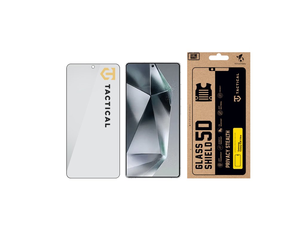 GLASS SHIELD PRIVACY STEALTH Ochranné sklo Tactical Glass Shield Privacy Stealth chrání Tvé zařízení před nejdrsnějšími střety a obsah displeje před šmíráky. Testováno na bojišti každodenního dění, stvořeno pro ty nejnáročnější scénáře! FLEXIBILNÍ TVRDOST Ochranné sklo Tactical Glass Shield Privacy Stealth odolává a zároveň pohlcuje nárazy, čímž poskytuje nepřekonatelnou odolnost při zachování flexibility, která je potřebná pro výkon v těch nejnáročnějších podmínkách. Je to prověřený bojovník, který vydrží déle než většina ochrany na trhu. NENÍ SKLO JAKO SKLO Toto není jen obyčejné sklo - je to vícevrstvá obranná jednotka. Hlavní vrstva s technologií Privacy Mode, chrání obsah displeje před šmíráky. To znamená, že kdokoliv vedle vás neuvidí obsah vašeho displeje. Díky oleofobní vrstvě a vrstvě proti otiskům prstů a nárazům zůstane tvůj displej čistý a chráněný před každodenními nárazy, rozlitím nebo poškrábáním. Jemně leštěné hrany a precizní vrstva AB lepidla zajišťují vzduchotěsné přilnutí k tvému zařízení, aniž by zanechaly slabá místa, kam by se mohl dostat prach nebo nečistoty. Každé sklo je na míru přizpůsobeno konkrétnímu modelu zařízení, zaručující dokonalou ochranu. NEODOLATELNĚ ODOLNÝ Tento kousek není jen pro parádu. U nás v Tactical dbáme na to, aby věci něco vydržely. Ochranné sklo bylo podrobeno tvrdým podmínkám a při výrobě jsme použili velice odolné materiály a aplikovali nejnovější technologie pro co nejlepší výstup ochrany. Je to sklo, na které se můžeš spolehnout i v těch nejextrémnějších podmínkách. I proto se na toto sklo vztahuje program doživotní záruky.* Viz podmínky programu doživotní záruky Tactical. BE ECO My v Tactical máme rádi přírodu. Všechny naše produkty jsou balené do ECO krabiček z recyklovaného papíru tak, aby co nejméně zatěžovaly životní prostředí. Mysli takticky!Doplňkové parametry