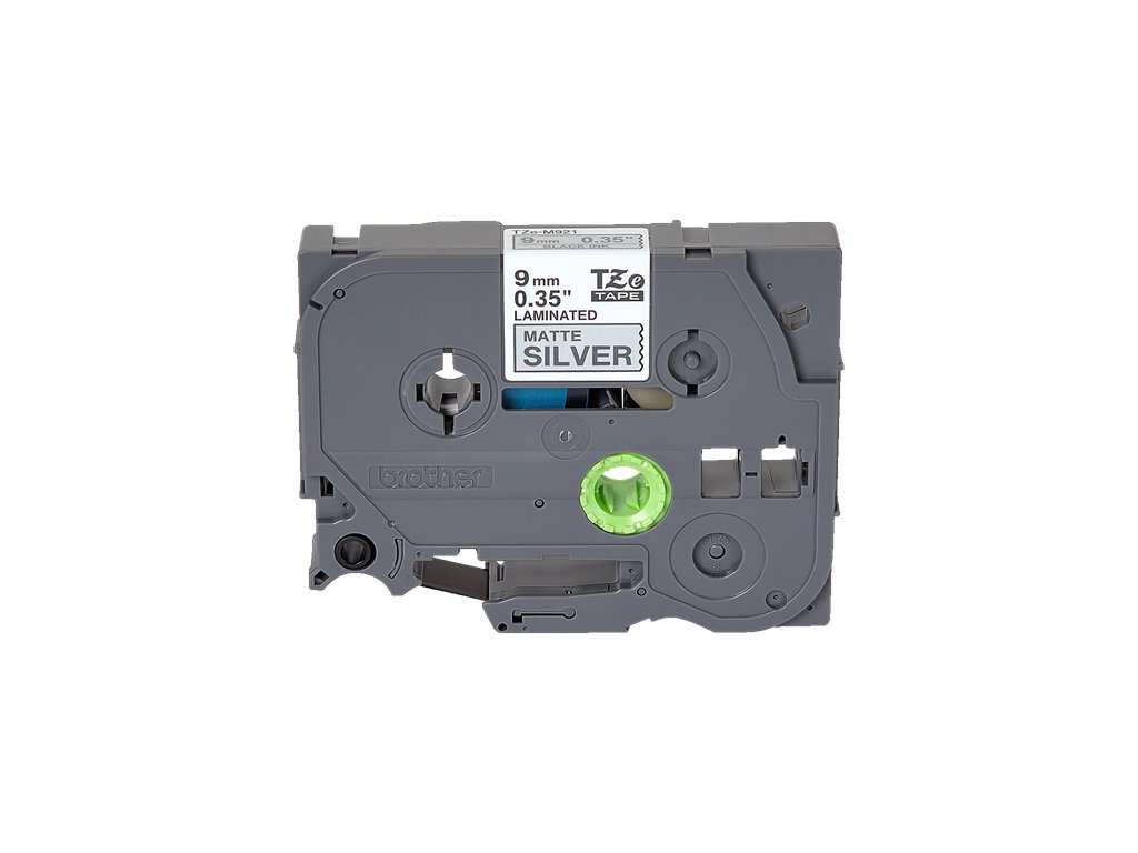 TZE-M921 - černý tisk/matně stříbrný podklad, 9mm