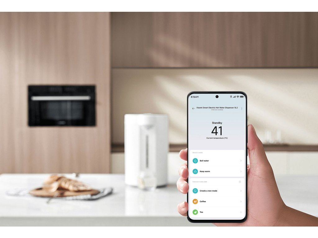 Nemusíte zdlouhavě vyčkávat u dávkovače, stačí se připojit k aplikaci Xiaomi Home a nastavit teplotu vody na chytrém telefonu nebo využít funkce, jako je výběr doby dávkování vody.